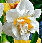 De dubbelblommiga narcisserna har en extra krans av välfyllda blomblad. Blommorna förekommer därför i alla möjliga färgkombinationer. Blomningstiden är ständigt och jämt förvånansvärt lång och de behöver inte tas ur jorden. Lämna dem bara ifred. De kommer översvallande tillbaka varje år. En bukett dubbla narcisser i vas är dessutom verkligen en praktfull syn.