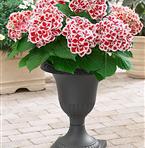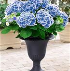 Denna blåvitt blommande hortensia i kombination med den dekorativa prydnadskrukan ger en somrig stämning åt din terrass eller balkong. Blommar rikt och länge. Zon 4. Leveranshöjd 30-35 cm. Mått på prydnadskrukan är: diameter 30 cm och höjd 38 cm.