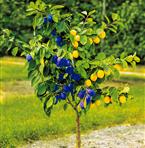 Två sorter på ett träd. Den saftiga 'Bleue de Belgique' med violett skal och mjukt, gult fruktkött samt 'Reine Claude Oullins', gulaktig med söt, kryddig arom. Dessa sorter pollinerar varandra. Mognar i juli-augusti. Zon 3-4.