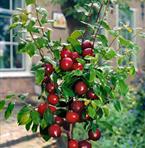 Innan frukterna kommer det en praktfull rosa blomning. Frukterna har en frisk röd glöd och de är lätt duniga. För en plats i stark sol. Självbefruktande. Frukter i augusti-september. Zon 1-2.