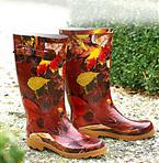 Det är skönt att arbeta i trädgården, men det går ut över dina skor. Våra speciella trädgårdsstövlar är den idealiska lösningen. Tillverkade i gummi med mönster av höstlöv. Bärpåse med matchande mönster ingår.