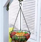 Vacker hängande korg i metall som är fylld med många godsaker för fåglarna. Innehållet består av inte mindre än 6 talgbollar, 2 jordnötsnät och 500 gr jordnötter. På våren kan hängkorgen åter komma till användning om man planterar trevliga små sommarväxter i den. Njut året om! Diameter 25 cm.