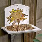 Detta foderbräde i trä kan hängas upp överallt. Genom sitt påmålade motiv är det ett iögonfallande inslag i trädgården. Lämpligt till fågelfoder, solrosfrön och jordnötter. Mått 30 x 20 x 23 cm ( l x b x h).