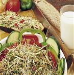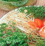 Komplett sats med en frösats, böngroddar, krasse, gul senap och råkostblandning.