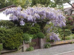 Föryngring genom beskärning Om en klätterväxt har blivit för stor, kan den föryngras genom beskärning i etapper. När det gäller blåregn, ska detta helst göras efter blomningen i juni till juli. Under det första året, klipp av eller dra upp en eller flera av huvudgrenarna vid basen av växten. Om alla grenarna är sammantrasslade, är det bäst att vänta några dagar efter du klippt grenarna. Du kommer då lätt att se vilka grenar som börjar vissna och tar inte bort fel grenar av misstag.