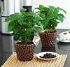Kaffeplanta i kruka av kaffebönor
