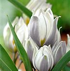 En ny, flerblommig, vit tulpan där utsidan av kronbladet går mot violett. Varje stjälk bär 4-5 blommor! Idealisk i rabatten eller en rymlig kruka på terrassen.