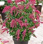 En mycket iögonfallande Pieris-varietet med friskt rosa blommor, som hänger i vackra klasar. Bladen blir kvar på växten även under vintern. Passar lika bra i rabatten som i en rymlig kruka på terrassen. Zon 1.