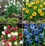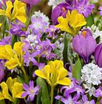 Njut redan tidigt på våren av fräscha färger: 25 vintergäcksiris (gula), 25 porslinshyacinter (ljusblå), 25 vårstjärnor (svagt blå) och 25 blå krokusar.