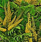 En buske som ger dig glädje hela året. Sommar- och vintergrön, på vintern dessutom friskt gula och doftande blomplymer samt därtill mörkblå bär. Zon 1-3.