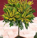 Du har glädje av denna buske på stam hela året. Sommar- och vintertid är den grön, på vintern dessutom med friska gula blomplymer och i anslutning därtill mörkblå bär. Stamhöjd 60-70 cm. Zon 3.