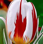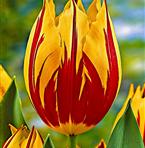 En flammande kombination av djupt gult och eldigt blodrött. Varje blomblad har eldiga flammor. En vacker trädgårdstulpan med extra starka stjälkar. Exklusiv som snittulpan. Beställ fler!