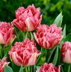 Denna imponerande nya tulpan har intensivt rosa, dubbla blomblad med en elegant tandad kant. En krämvit linje löper ned till den undre kanten.