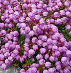 Blommorna påminner lite om små ljusrosa valnötter. Denna kompakta vintergröna buske blommar då och då synnerligen översvallande och ger din trädgård extra färg. Leveranshöjd c:a 10 cm. Zon 2-3.