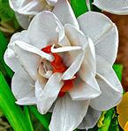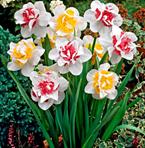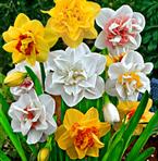 En perfekt mot varandra avstämd blandning av 2 olika sorters narcisser, båda med en mycket slående dubbelblommig blomkrona.