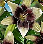 Rykande färsk på marknaden och verkligen lätt att känna igen på det iögonfallande mörka hjärta som varje blomma har. De passar precis lika bra till trädgården som de storblommiga liljorna. Mycket vackra i vas. Zon 4-5.