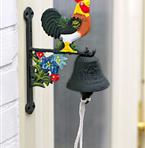 Trevlig dörrklocka i järn med en färggrann tupp. En robust klocka att ha vid ytterdörren eller köksdörren. Klingar vackert med ett underbart nostaligskt ljud och är dessutom mycket dekorativ. Höjd 22 cm.
