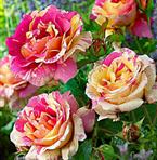 En särskilt rikblomstrande stamros. De iögonfallande gulröda eller rödgula blommorna sprider en härlig kryddig doft. De vackra, läderaktiga bladen gör denna ros komplett. Zon 4.