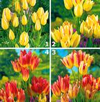 En tulpansort som under blomningen genomgår fyra färgstadier. Från ljust gulgrön, ljusgul, gul med svagt rosa till laxrosa ton. Dessutom växer en riktig liten bukett ur varje lök, 4 till 5 blommor per stjälk är ingen ovanlighet. En verklig syn för ögat!