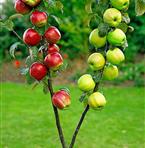 Elstar och Golden Delicious. Två supersunda sorter, som befruktar varandra, förädlat på en stam. Det är enkelt och roligt att plocka två olika sorters äpple från ett och samma träd. Passar också till den lilla trädgården. Skördas i oktober. Zon 1-2.