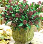 En praktfull städsegrön liten buske. Skimmian står ut under hösten och vintern genom sina röda knoppar. På våren blommar den med vita blommor.