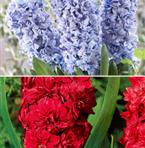 Dubbelblommiga hyacinter ser man inte så ofta och vi är därför mycket stolta över att kunna ge dig detta erbjudande nu. De sticker verkligen ut med sina vackra färger och doftar givetvis lika ljuvligt som de enkelblommande hyacinterna. Kollektionen består av 5 hyacinter 'Hollyhock' och 5 'Blue Tango'. Zon 4.