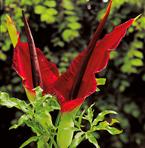 Det är som eldtungan ur en drakkäft! Ur den stora löken utvecklas en iögonfallande, stor och karmosinröd blomma med ett stort kastanjefärgat stödblad. Blomman bäres upp av en rejäl stjälk. Ett verkligt blickfång i din trädgård. Njut i fulla drag! Zon 3.