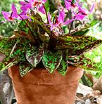 Blommorna får oss att tänka på cyklamen. Dessa blad är vackert marmorerade. I det fria kommer denna knölväxt från Alperna. Passar både i kruka och rabatten. Zon 4.