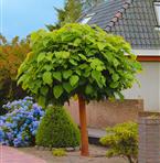 Brett växande träd med stora, vita trumpetformade blommor. Idealisk som naturligt parasoll. De stora, 20 cm långa, hjärtformade bladen skiftar färg till ljusgult om hösten. Trumpetkronan jagar bort mygg och flugor. Zon 1-2.