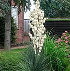 Strålande vita blomklasar på höga stänglar. Blombladens ändar är svagt lavendelfärgade. Zon 4-5.