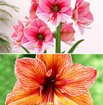 Flerfärgad amaryllis. Denna lökväxt för att ha inomhus har vuxit i popularitet under de senaste åren. Vi kan tala om en trend. Och det är inte så konstigt, för 4 blommor per stjälk är normalt för närvarande. Kollektionen består av följande sorter: 1 'Purple Rain' och 1 'Exotica'®.