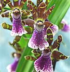 En iögonfallande och ovanlig orkidé med breda flikar som är slående vita och lila till färgen. Kommer ursprungligen ifrån Sydamerikas inland. Blommorna doftar ljuvligt. Kan blomma på nytt efter 10 veckors vila.