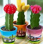 Ge dessa ympade kaktusar en ljus liten plats, utan alltför starkt solljus. Blommar på sensommaren. Inklusive dessa avbildade minikrukor.