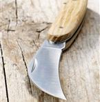 Den hopfällbara trädgårdskniven har lackerat handtag i ask och bladet är av rostfritt stål. Kniven är 10 cm lång i hopfällt läge och 18 cm lång när den är uppfälld.