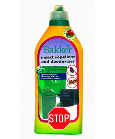 Getingar, flugor, bananflugor, myggor och deras larver är inte längre något besvär. Bakker Bio insektsmedel och luftfräschare är en 100% vegetabilisk produkt för att bekämpa insekter i och runt soppåsar, papperskorgar, sopcontainers på hjul och i hushållskomposten etc. Det innehåller ämnen med starkt avvisande och långvariga dofter. Detta naturliga myggmedel är säkert för barn och djur.