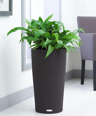 LECHUZA bevattningssystem: Detta unika bevattningssystem fungerar med vanlig krukväxtjord. Det gör skötseln av dina växter väldigt lätt! Oavsett om du är borta några dagar eller bara inte har tid att vattna dina växter: sköter LECHUZA det åt dig. Allt du behöver göra är att ibland fylla på vattenbehållaren och dina växter kommer att ha tillräckligt med näring och vatten för optimal tillväxt. Näringsämnena avges långsamt från dräneringssubstratet, så med en fylld vattenbehållare kan din växt ta hand om sig själv. Den integrerade vattenmätaren ger en exakt indikation av när vattenbehållaren behöver fyllas på igen.