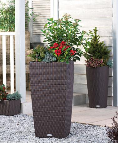 LECHUZA bevattningssystem: Detta unika bevattningssystem fungerar med vanlig krukväxtjord. Det gör skötseln av dina växter väldigt lätt! Oavsett om du är borta några dagar eller bara inte har tid att vattna dina växter: sköter LECHUZA det åt dig. Allt du behöver göra är att ibland fylla på vattenbehållaren och dina växter kommer att ha tillräckligt med näring och vatten för optimal tillväxt. Näringsämnena avges långsamt från dräneringssubstratet, så med en fylld vattenbehållare kan din växt ta hand om sig själv. Den integrerade vattenmätaren ger en exakt indikation av när vattenbehållaren behöver fyllas på igen.