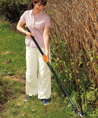 Genialisk universalklippare som både kan användas till högsittande grenar och till grenar vid marken. Har en räckvidd på upp till ca 3,5 m. Med precisionsslipade blad som har lågfriktionsbeläggning och justerbart huvud som kan vridas upp till 230º. Fiskars trädsåg och Fiskars fruktplockare för universalklippare i vårt sortiment kan monteras till denna universalklippare för att utöka användningsmöjligheterna. 5 års garanti.