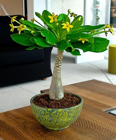 Hawaiipalmen är en väldigt unik suckulent från Hawaii. På Hawaii är det en vulkanpalm och en väldigt sällsynt och skyddad växt. Vi donerar en del av inkomsten för att skydda vilda växter som Hawaiipalmen på Hawaii. Deras stam är som en vattenreservoar, och därför klarar den här växten torka. Ta bort bladen nerifrån när de gulnar. Med tiden kommer de äldre bladen i nedre delen av växten att fällas och nya blad från utvecklas från kronan. Under vintermånaderna kan ljusgula blommor förekomma.