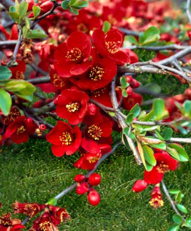 Hybridrosenkvitten som marktäckareSärskild om man planterar i stora grupper blir Chaenomeles x superba 'Red Trail' en underbar marktäckare. De ovala bladen täcker marken mycket bra. Plantera hybridrosenkvitten mellan fristående buskar som Camellia Japonica, Sambucus Nigra 'Thundercloud' eller Clethra Alnifolia 'Pink Spire'.