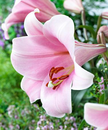Trumpetliljan kan planteras i kruka.Tack vare sin starka blomstjälkar växer trumpetliljan 'Bell Song' mycket bra i blomkrukor och lådor. Du kan fylla hela krukan med de här vackra liljorna. Plantera lökarna med ca 10 cm mellanrum. Du kan också skapa en vacker kombination med andra liljelökar och den mycket lägre växande astern (Callistephus).