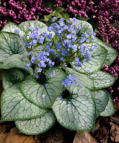 Kaukasisk förgätmigej 'Jack Frost' i trädgårdenKaukasisk förgätmigej 'Jack Frost' (Brunnera macrophylla) är en stark perenn växt som kan stå kvar på samma plats i flera år. Kaukasisk förgätmigej är en av de mest populära gröna växterna. Den trivs och växer bra även i skugga. Du kan plantera den här växten som solitär eller plantera den mellan andra växter i rabatten.