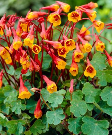 Plantan blommar på sommaren med gula och orange blommor med röda och orange ståndare. De står på slående rödfärgade stjälkar. Plantan tycker om att klättra på en solig och skyddad plats och kan bli upp till 3 meter hög.
