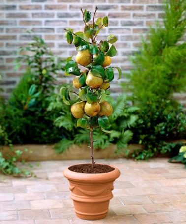 Pelarpäron i krukaDet pelarformade päronträdet växer bra i en stor blomkruka eller terrasslåda. Trädet självt tar väldigt liten plats men ger stora fördelar. Plantera Pyrus communis på en skyddad, solig plats. Du kan skapa en 'mini-fruktträdgård' genom att plantera plantera pelarpäron, dvärgkörsbär, dvärgpersika, pelaräpple och dvärgaprikos i krukor och placera dem tillsammans på din uteplats eller balkong.