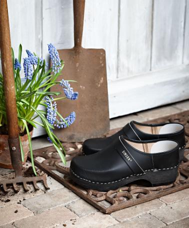 Stadiga träskor i lättviktigt poppelträ och smidigt, högkvalitativt läder. Optimala för promenader och perfekta att bära under trädgårdsarbetet!