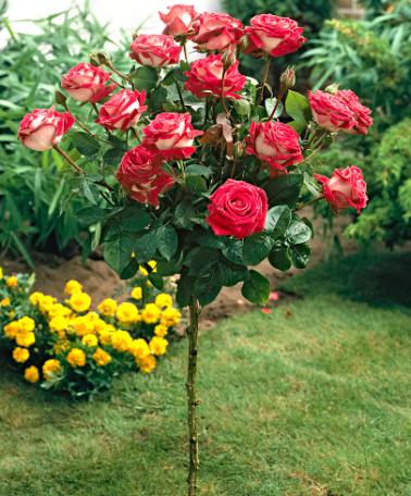 Den här ljuvliga rosen ser helt betagande ut när den placeras i en kruka på uteplatsen. Ta en dekorativ kruka med hål i botten, täck botten med ett lager krukskärvor eller lecakulor. Lägg färsk krukjord i krukan och blanda i lite kogödselkulor. Placera stamrosen på lämpligt djup. Fyll med jord och tryck till. Vattna direkt efter plantering. Ställ krukan med stamros 'Nostalgie'® på solig eller halvskuggig plats.