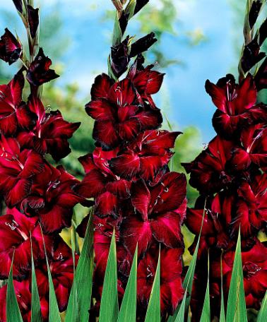 Storblommiga gladioler är utmärkta kombinationsväxter.De här storblommiga gladiolerna 'Black Jack' har en slående, djupröd färg. Du kan skapa vackra kombinationer längs rabatten genom att plantera en grupp gladioler bredvid Cosmos 'Flamingo' eller Dahlia. Mycket okonstlad effekt uppstår när man kombinerar med prydnadsgräs, som det japanska blodgräset 'Red Baron. Den här storblommiga sorten är också en utmärkt snittblomma.