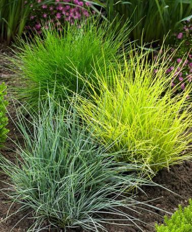 Även i en rabatt är detta prydnadsgräs ett slående inslag. Tillsammans med dvärgaster och vackra trädgårdsiris (Iris barbata ’Circle Step’) eller blå glansiris (Iris laevigata) bildar de en fantastisk kombination i blomsterrabatten.
