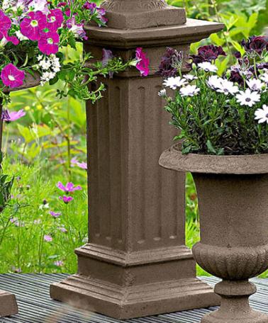 Denna sockel i glasfiber har ett klassiskt utseende. Sockeln har en vacker rostbrun färg. Glasfiber har många fördelar, det är starkt, lätt och tål både frostväder och vind. Ett absolut måste för din trädgård, terrass eller balkong. Perfekt och mycket dekorativt till att sätta dina blomkrukor på när du vill ha dem i lite höjd!