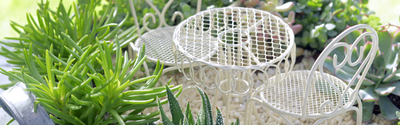 Den här flugan från Amerika har nu också nått vårt land! Mini-trädgård är trädgårdsarbete i miniatyr. Med dessa charmiga och dekorativa accessoarer för mini-trädgårdar såsom små trädgårdset, stolar, staket, fågelburar och diverse andra trädgårdstillbehör kan du skapa din egen mini-trädgård efter tycke och smak! Mini-trädgårdar är charmiga och roliga blickfång både på terrassen och i vardagsrummet.